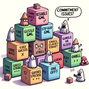 DALL·E-2023-10-24-00.51.54-Illustration-of-whimsical-code-blocks-depicted-as-building-blocks.-Some-blocks-labeled-Reusable-GML-are-seen-in-multiple-game-setups-while-others 0 Votes See more Previous article Reusable Code in GML is the gift that keeps on giving Leave a Reply Cancel replyYour email address will not be published. Required fields are marked *Comment * Name * Email * Website Save my name, email, and website in this browser for the next time I comment. By using this form you agree with the storage and handling of your data by this website. * Δ This site uses Akismet to reduce spam. Learn how your comment data is processed.